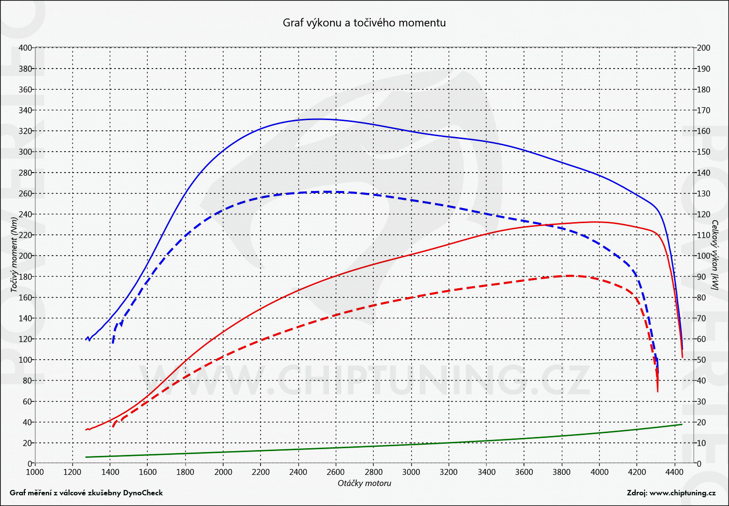 Důkaz místo slibů. Všechny naše úpravy opravdu měříme na válcové zkušebně a jako důkaz nabízíme vybrané skutečné grafy měření tohoto motoru.
