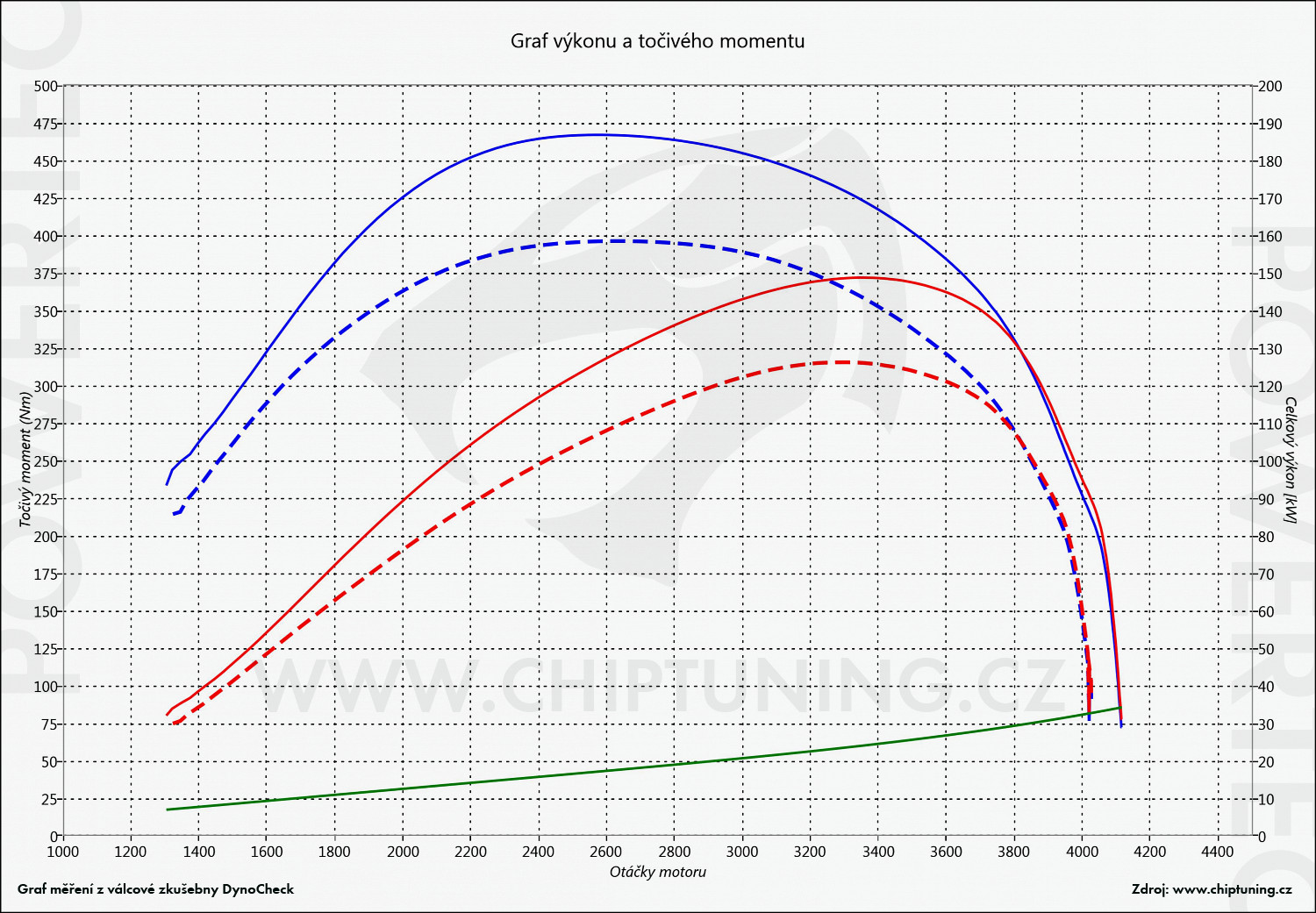 Důkaz místo slibů. Všechny naše úpravy opravdu měříme na válcové zkušebně a jako důkaz nabízíme vybrané skutečné grafy měření tohoto motoru.